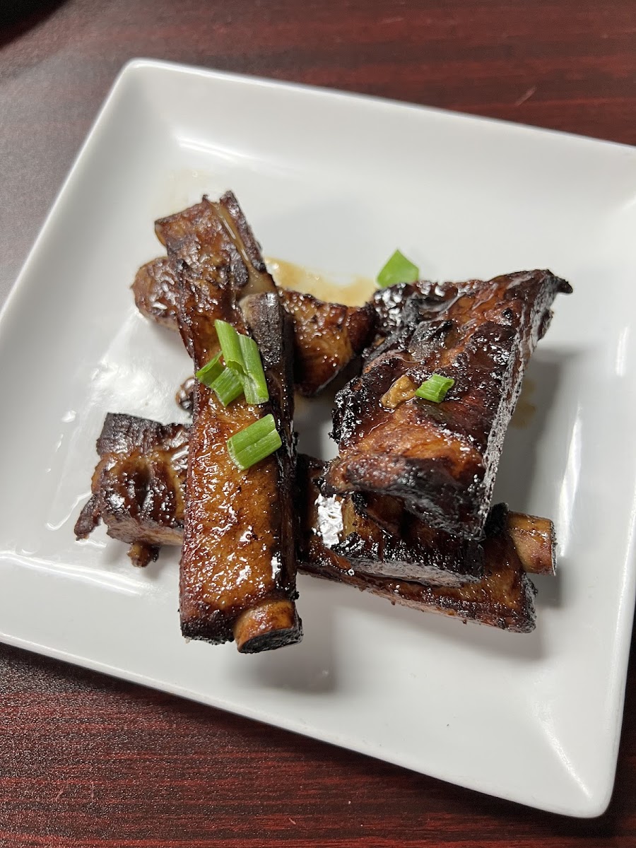 Costillas crujientes, tiernas, dulces y picantes. / Crispy, tender, sweet and spicy ribs.